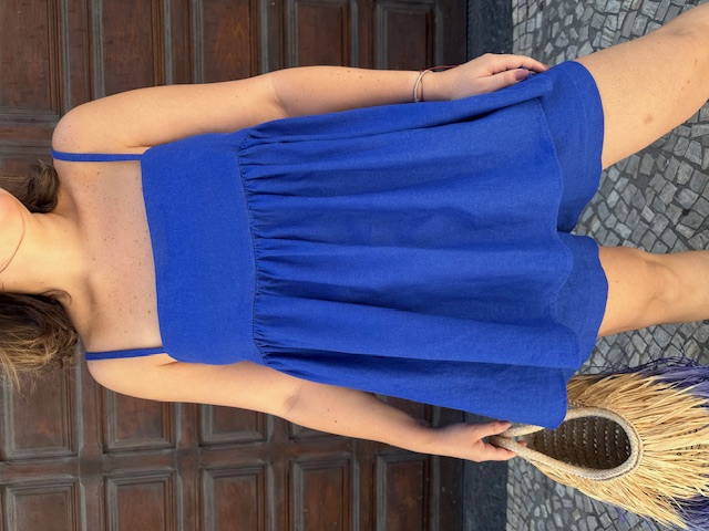 Bata em linho , com pala reta e corpo semi longo com franzidos. Super fresquinha pro nosso verão!