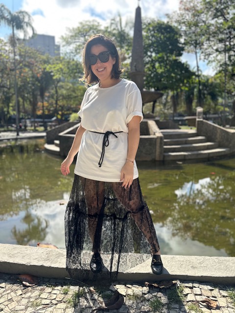 Nossa saia midi em uma renda leve e especial, para ousar da transparencia e usar com sobreposições interessantes.