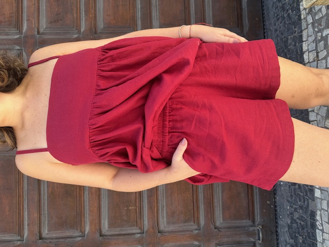 Perfeito para usar embaixo da bata franzidos de linho. Um charme esse lookinho!